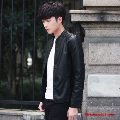Skinnjacka Ungdom Höst Pu Läder Jacka Vår Slim Fit Motorcykel Herr