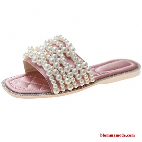 Tofflor Herr Mjuka Pärlor Platta Super Glidskydds Trend Sommar Dam Röd Svart