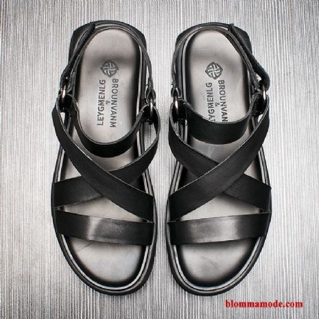 Stranden Tofflor Äkta Läder Sandaler 2019 Sommar Mjuka Herr Svart