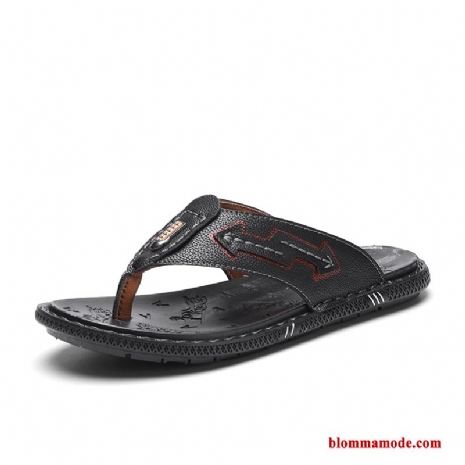 Par Äkta Läder Mjuka Sommar Herr Tofflor Inom Svart