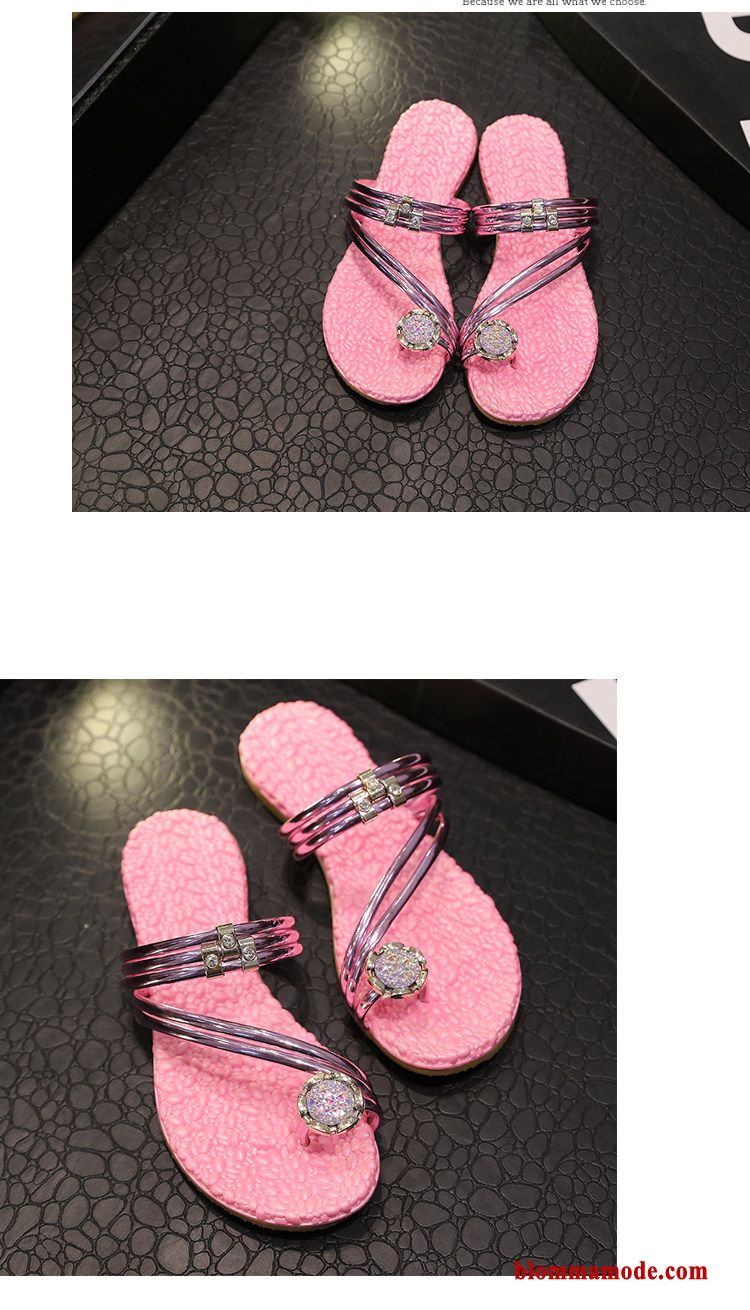 Dam Tofflor Flip Flops Sommar Strass Platta Skor 2018 Sandaler Med Tjocka Sulor Vit Silver