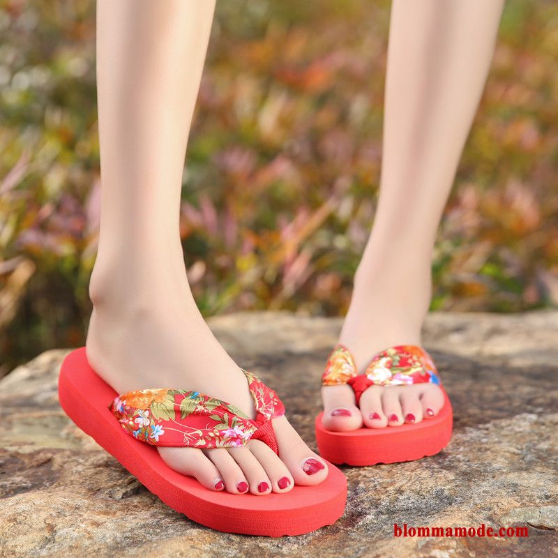 Sommar Med Kilklack Tofflor Tryck Skor Herr Stranden Med Tjocka Sulor Dam Svart Beige
